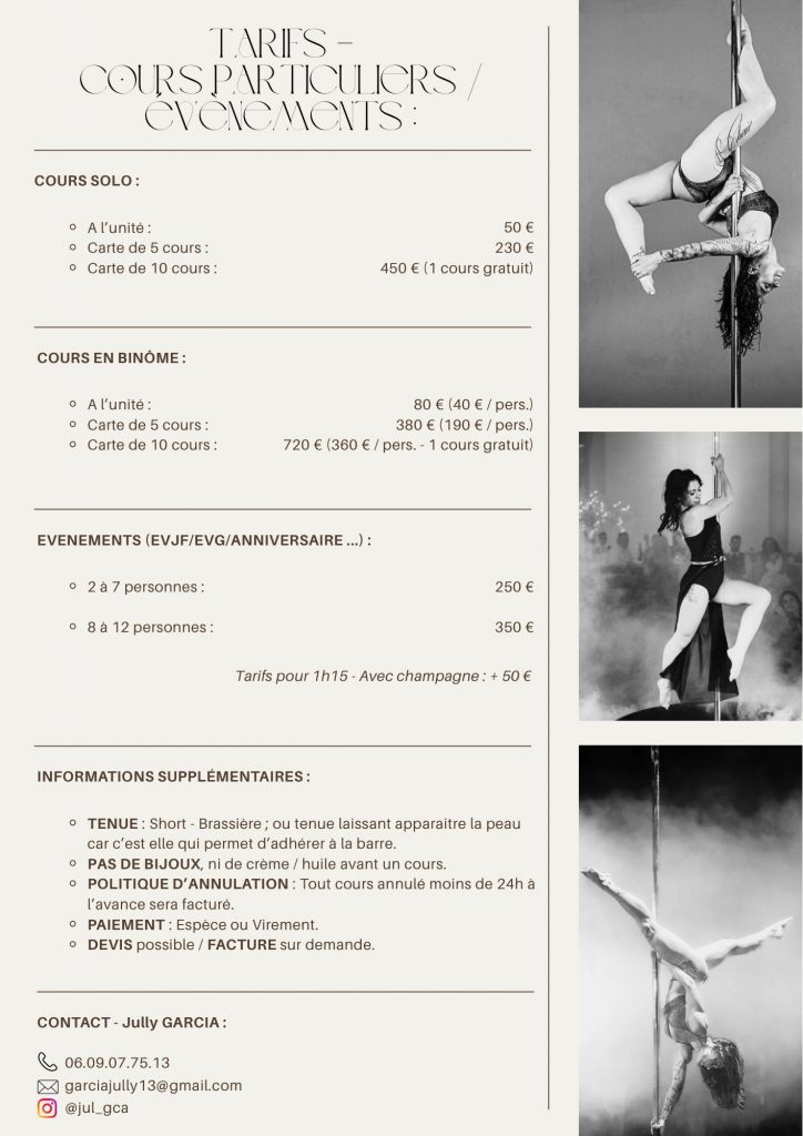 Vous pouvez également faire appel à nous pour des cours particuliers afin de travailler votre technique, améliorer votre coordination, votre posture, vous préparez aux compétitions ou a un concours chorégraphique / examen.